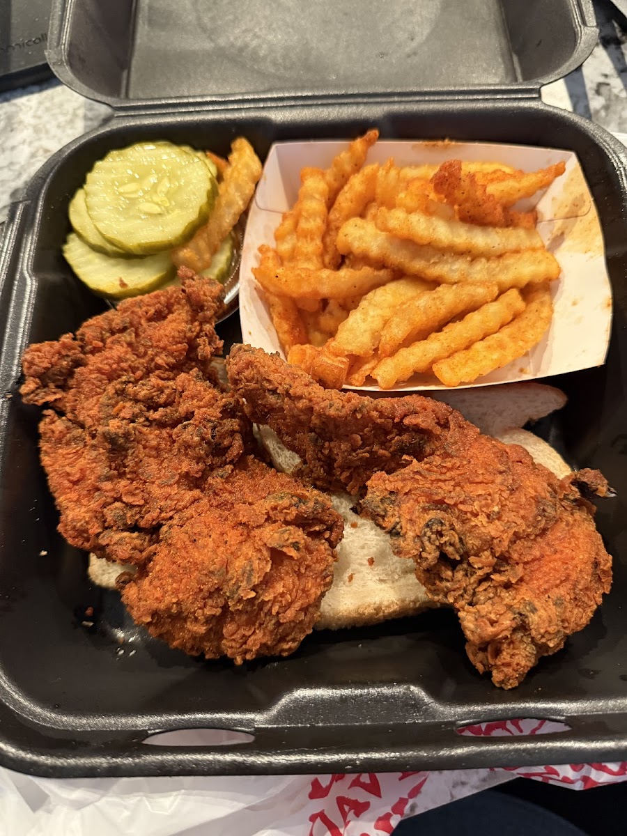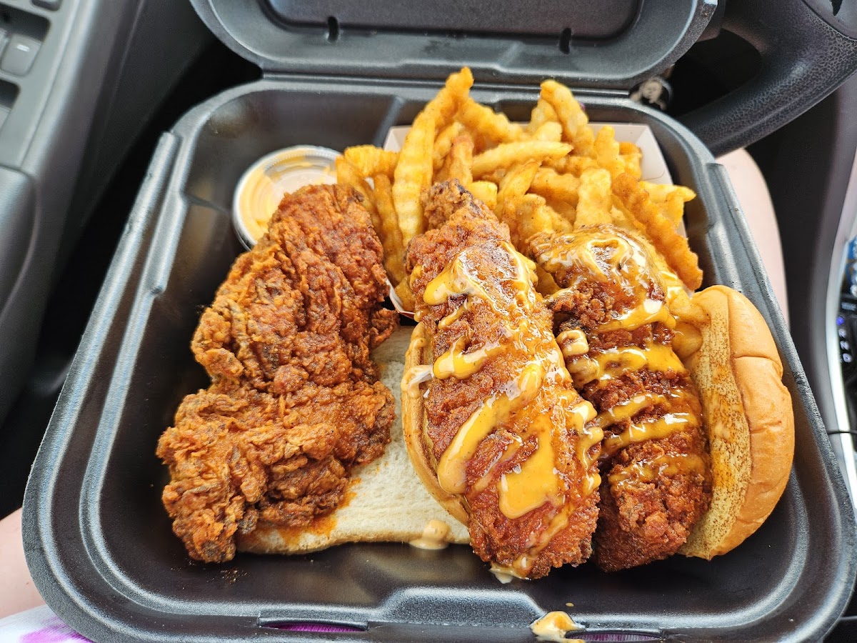 Drove 30 mins & was worth it. Much better than the other Hot Chicken place in Ft Wright. Chicken was juicy and the Medium has a good spice without being too hot. I feel like the portions were above average for the price, 2 tenders are about the same as 4 Canes fingers. The fries also had a great flavor. Place was really busy and the service was really good for how packed it was. Tables were constantly being cleaned, which in my opinion is a HUGE plus, because a lot of fast food restaurants neglect their dining area & I hate having to sit down at a table someone else just finished eating in that hasn’t been cleaned. Will definitely be back, I just hope the cleanliness stays the same.