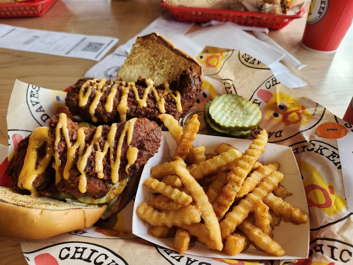 Dave’s Hot Chicken was amazing. The service was fast, accurate, kind, and overall exceptional. Employees were working constantly, cleaning tables or around the establishment- and making sure all guests were more than satisfied. The food itself was amazing, I have dined in and gotten to go- both are great. My go to order is the dave’s mini sliders with cheese fries!! so good, my new favorite spot